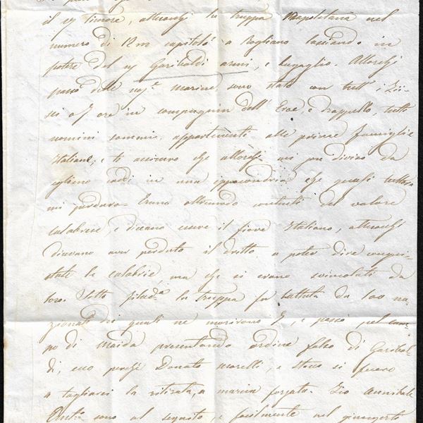 The beautiful letter, written by Di Napoli's brother-in-law and certainly a commander of the Calabrian fighters, is a true chronicle that witnesses firsthand the passage of the Hero of the Two Worlds from Calabria to Rome.