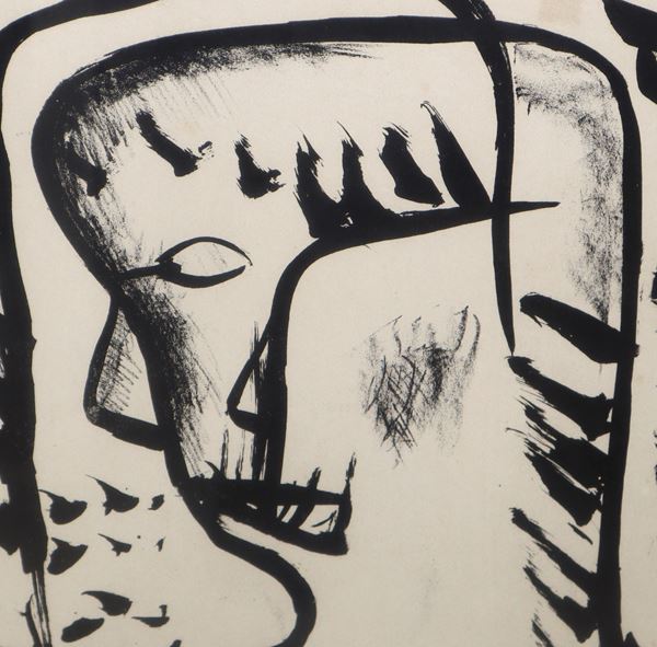 Black ink drawing on cardboard