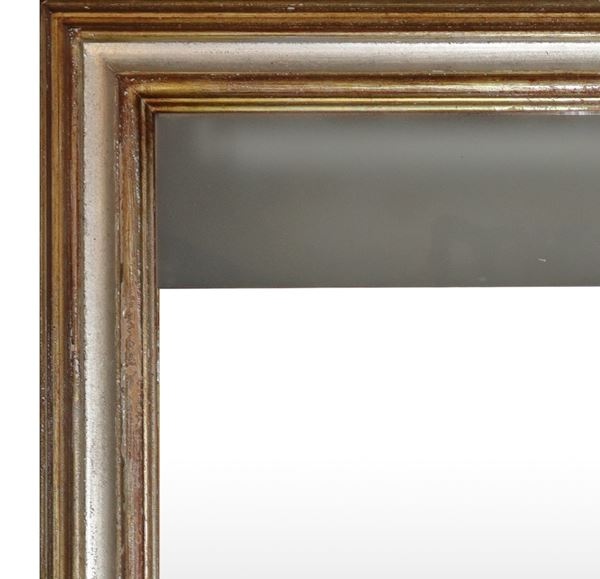 Antique style gold and silver frame mirror in wood, backlit, 20th century