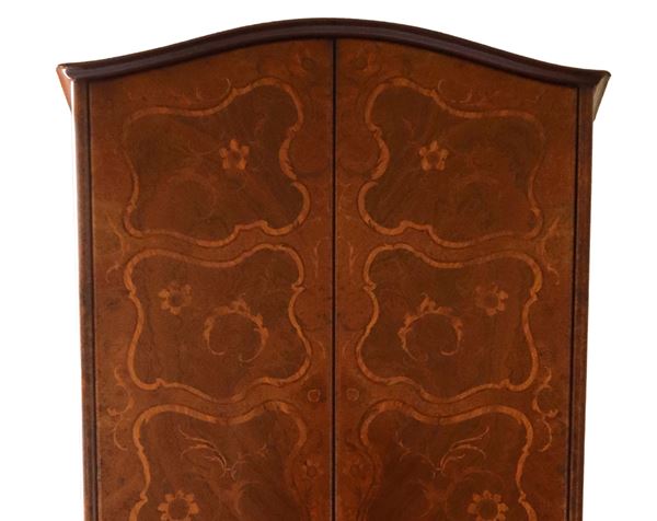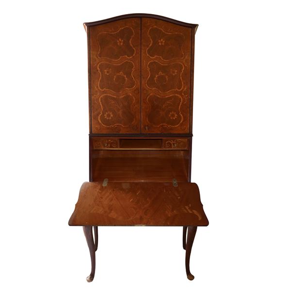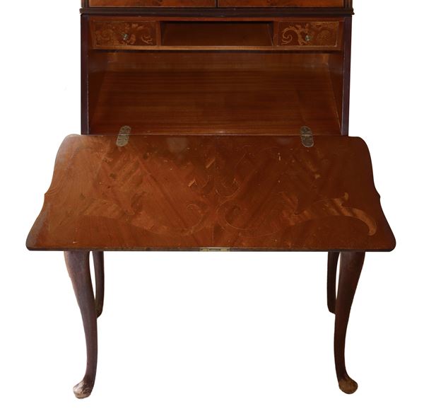 Cavatorta factory, Rome. Front inlaid in precious woods. Lower part with two drawers and folding door, upper part with two doors.