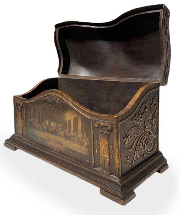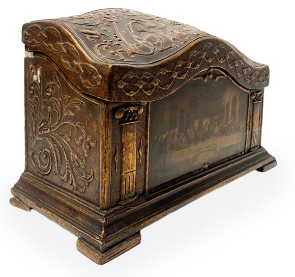 Gilded wooden letter box with depiction of the Last Supper on the front, 20th century