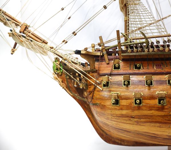 with closed sails H 90 cm - L. with full sails 125 cm - hull 83x20 cm - in display case H 168x153x60