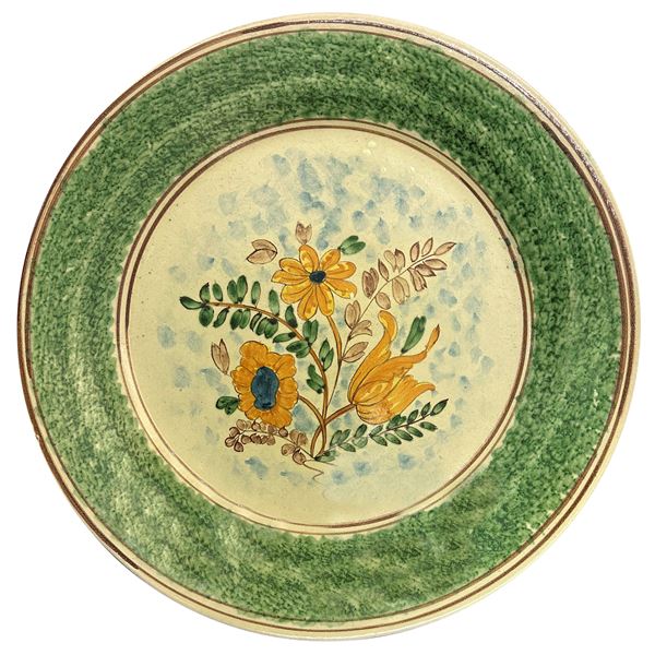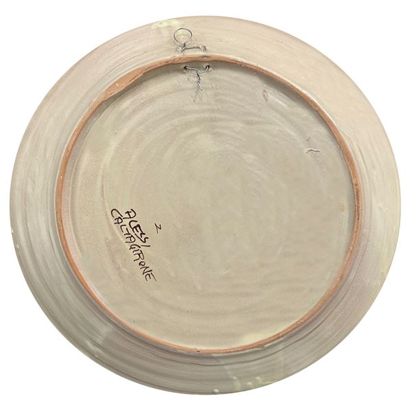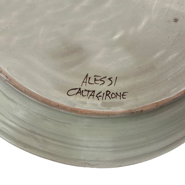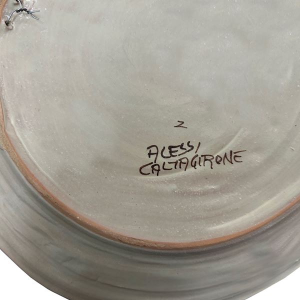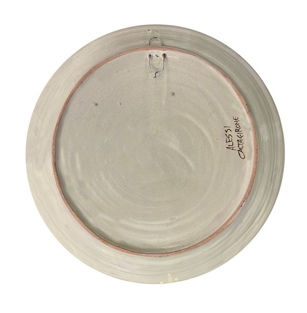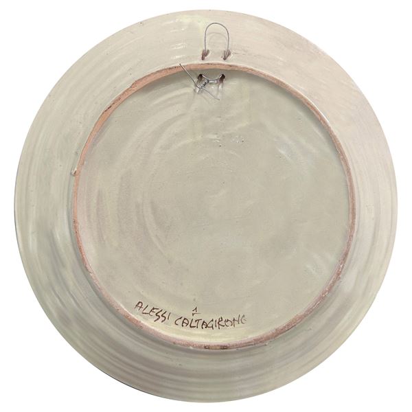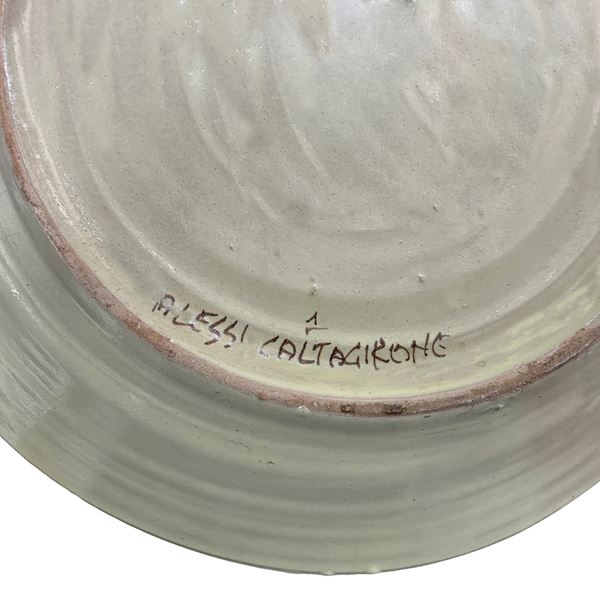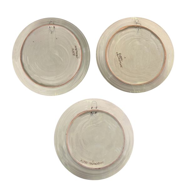 N. 3 Caltagirone majolica plates, hand painted in the centre, 20th century