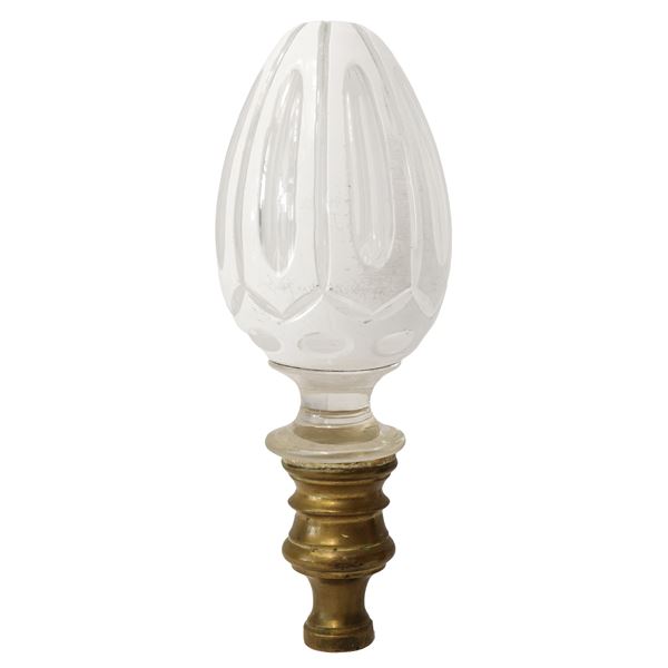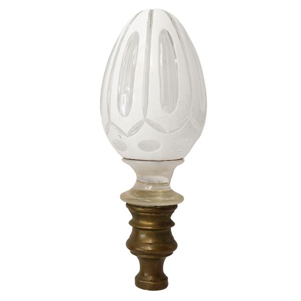 Pair of milky white glass knobs with transparent decoration, nineteenth century