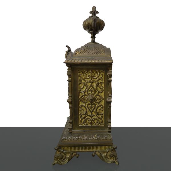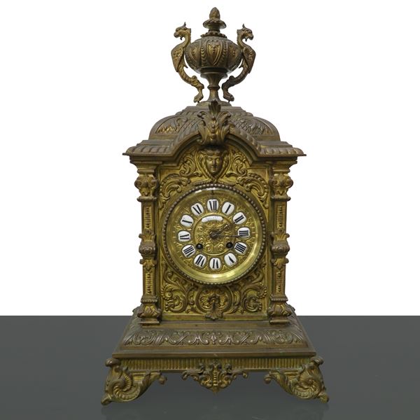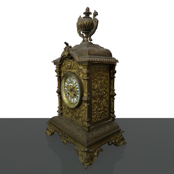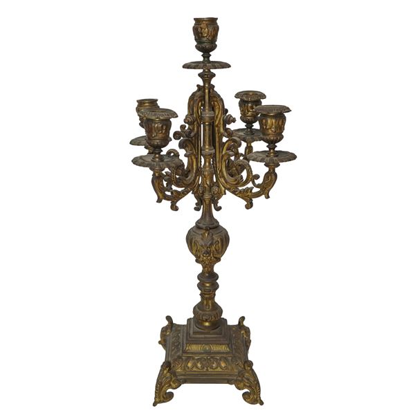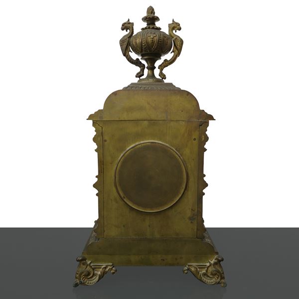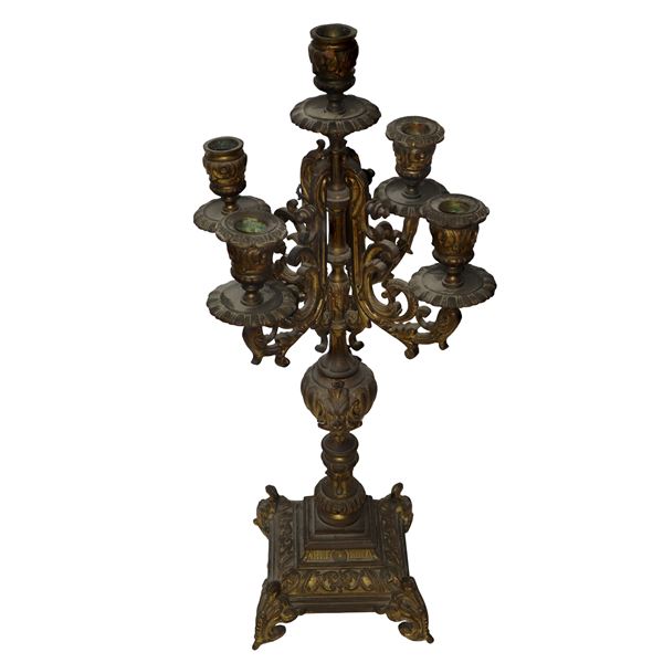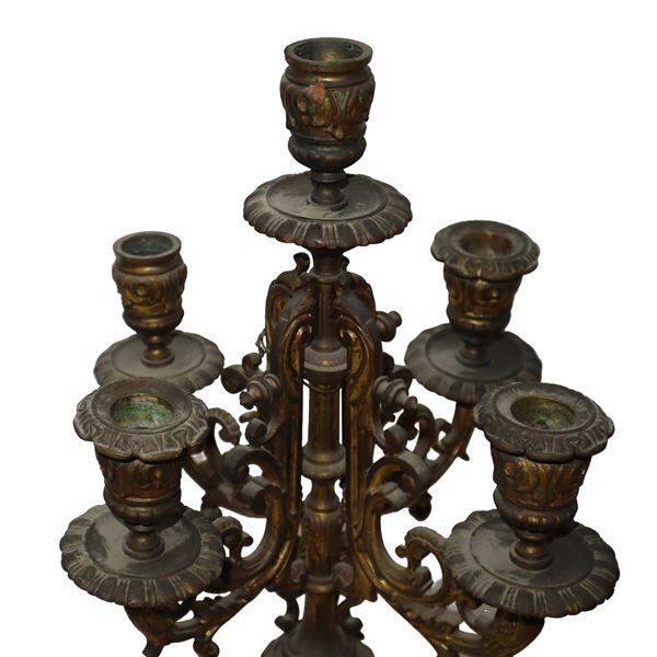 Table clock and two five-light gilt bronze candlesticks, nineteenth century