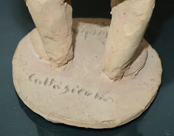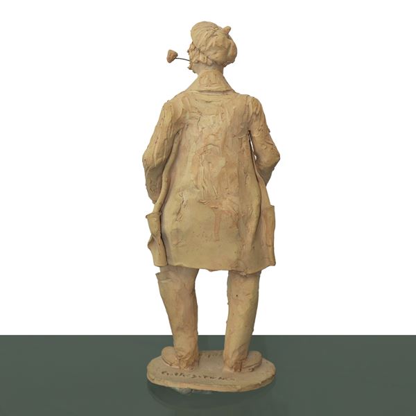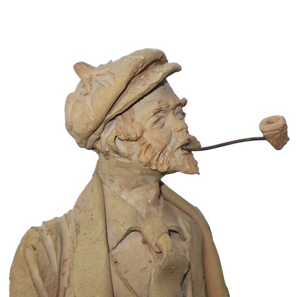 Terracotta figurine depicting a man with a pipe and hands in his pockets, 1975