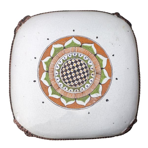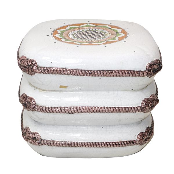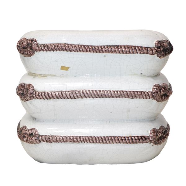 White majolica stool decorated with fake ropes on the sides, 1970