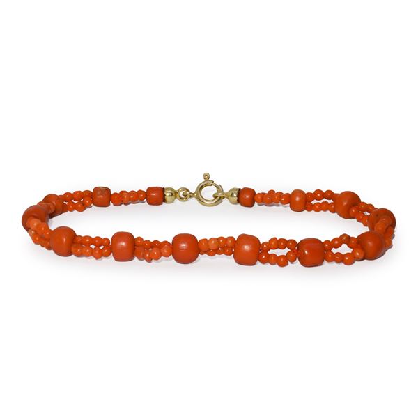 CORAL BRACELET WITH CORAL BALLS INTERSIDED WITH MICROBEADS, GOLDEN SILVER SUSTA, NINETEENTH CENTURY