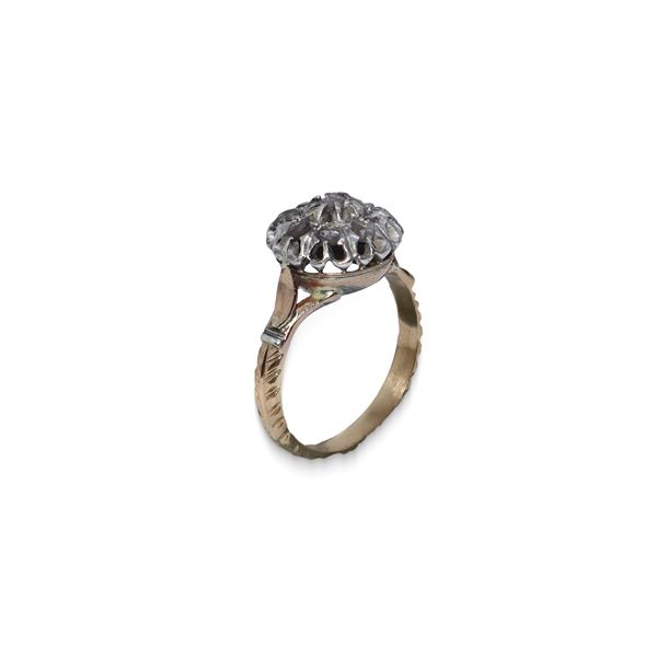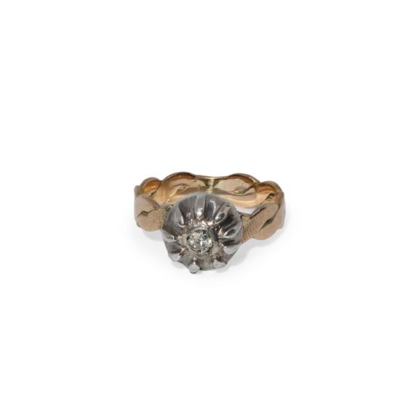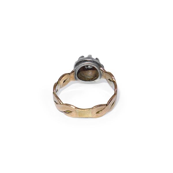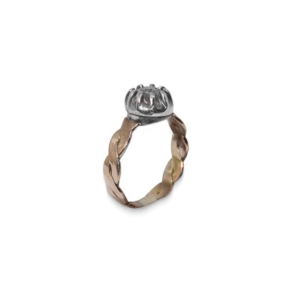 Gold ring and cupella with 0.5 diamond with braided shank, Early 20th century