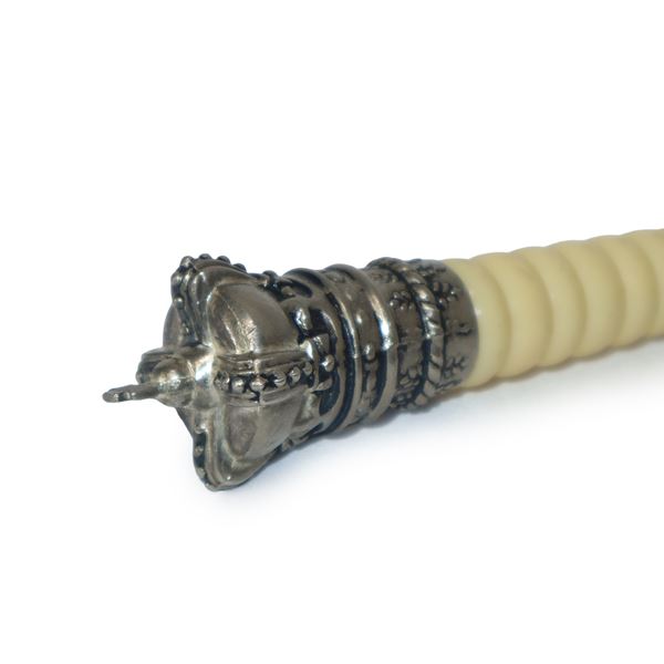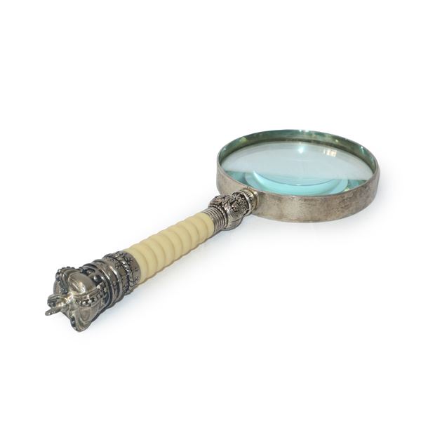 Magnifying glass with bone handle and silver crown-shaped end, Early 20th century