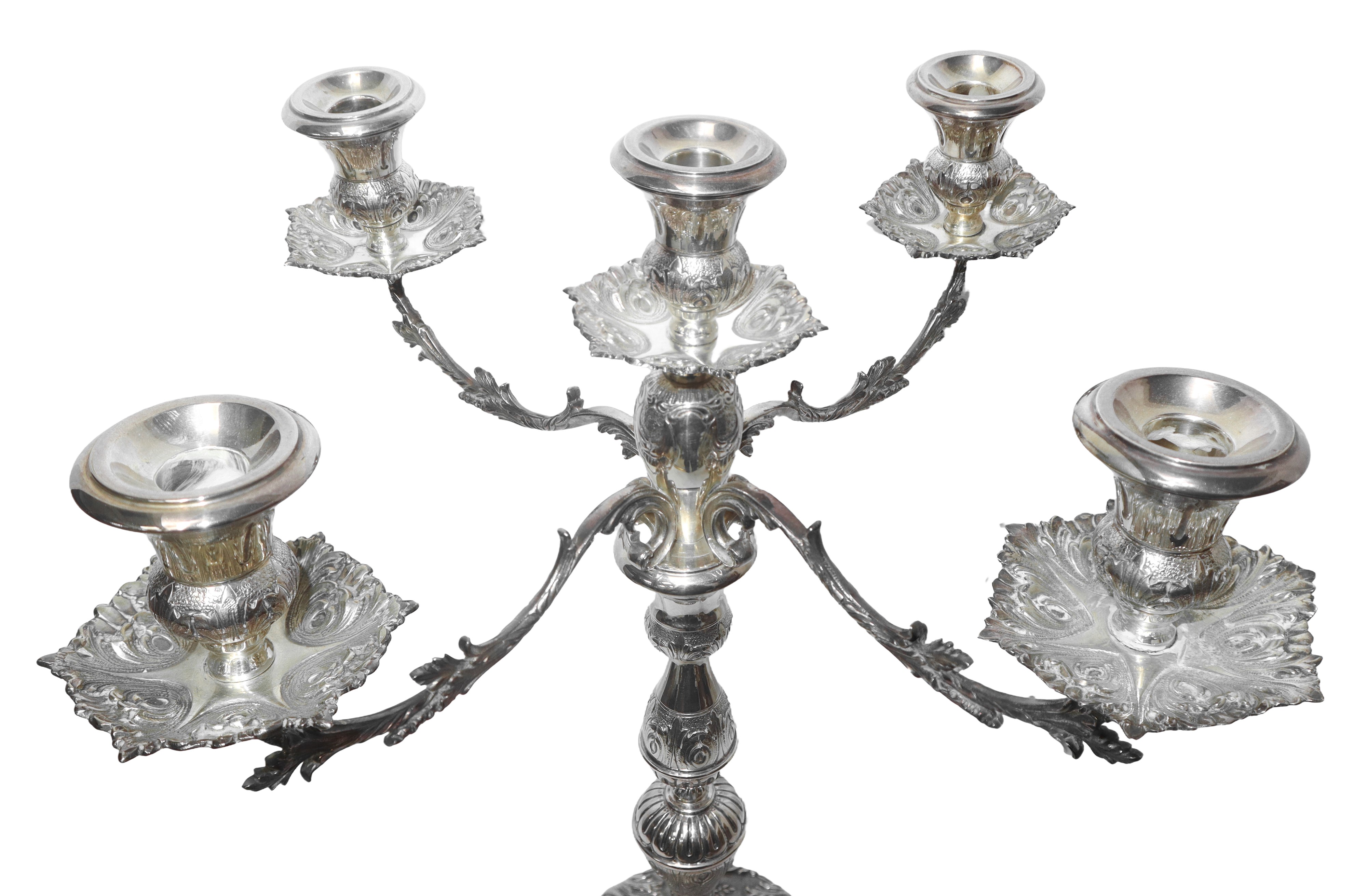Pair of 5-light candelabra, round base with embossed acanthus leaves., Empire style, 20th century