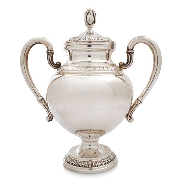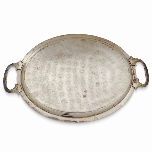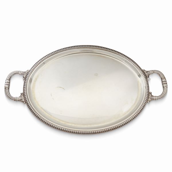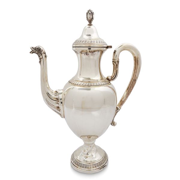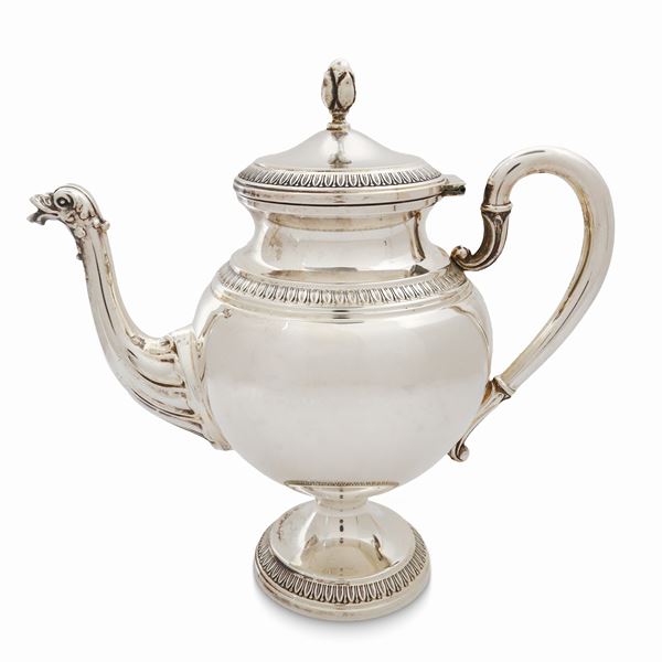 Silver service with tray, coffee pot, teapot, milk jug and sugar bowl