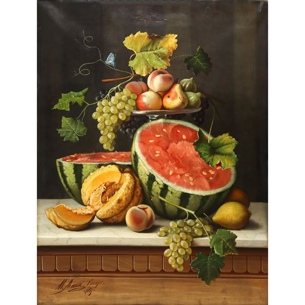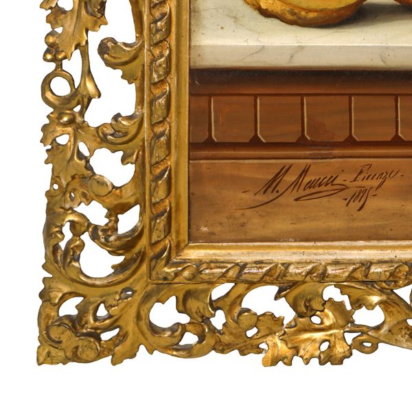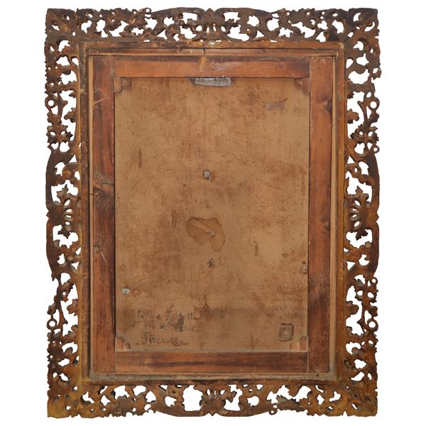 Signed lower left. In a beautiful gilded and perforated wooden frame