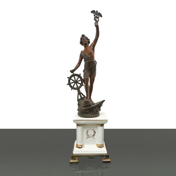 Pair of sculptural figures on a white porcelain base, Late 19th/20th century