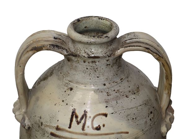 Quartara in Catalgirone majolica, enamelled and with handles., 1815