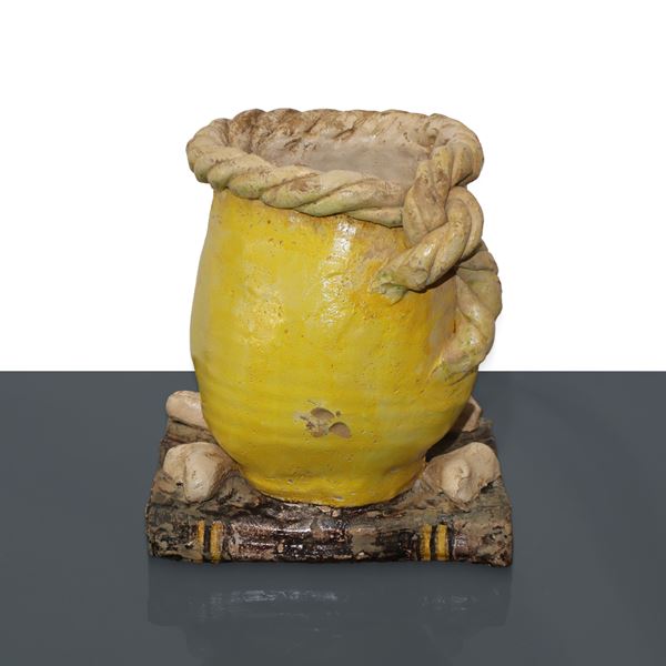 Vanitas vase in Caltagirone majolica, Early 19th century