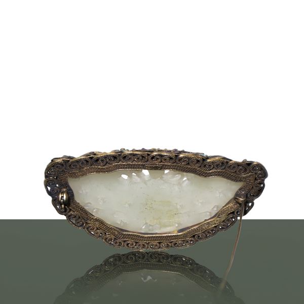 Chinese brooch in silver and white jade pierced entirely by hand