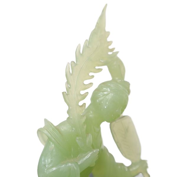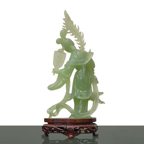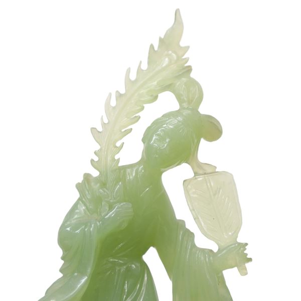 Guanin with fan in light green jade