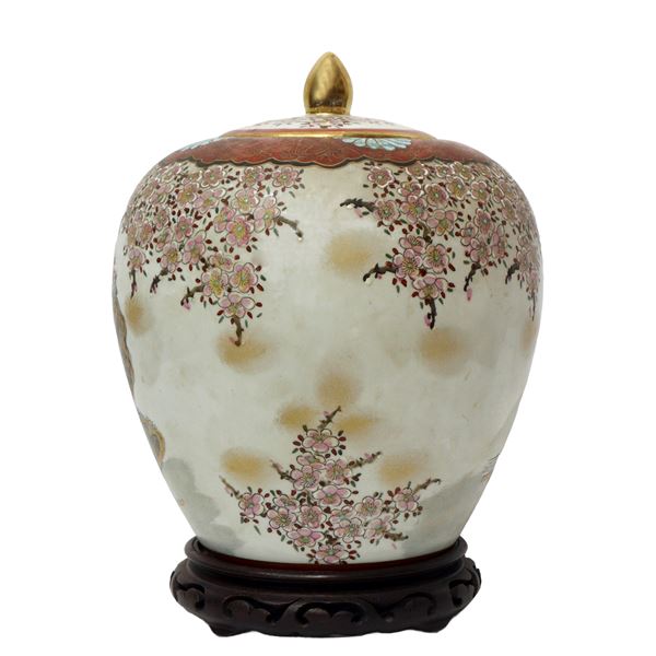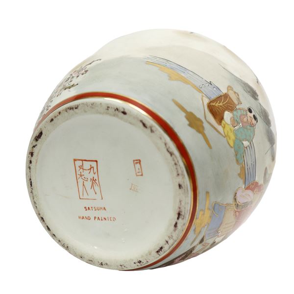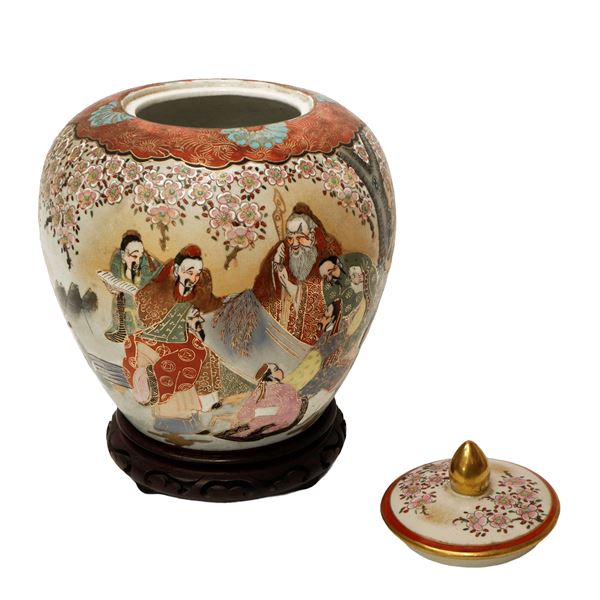 Japanese Satsuma porcelain vase with lid and depiction of wise men