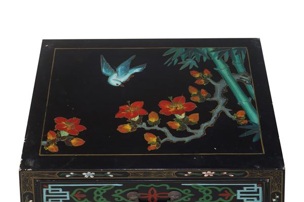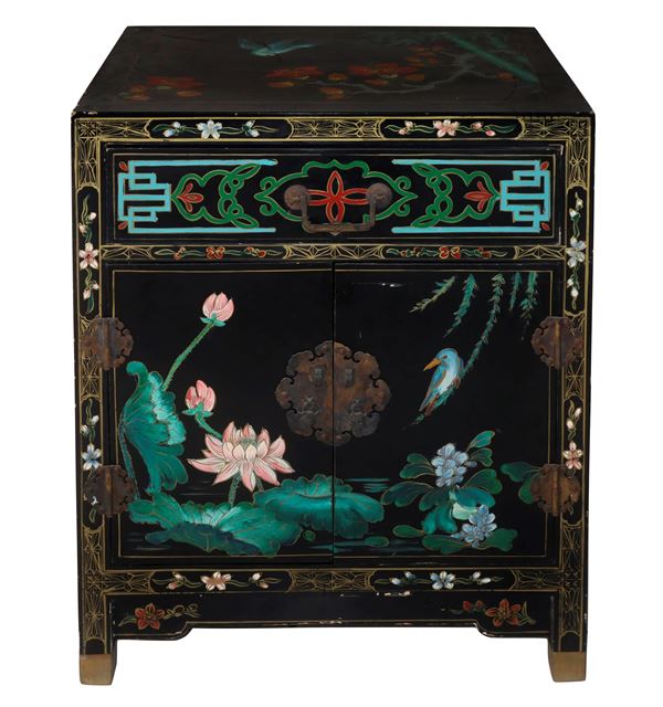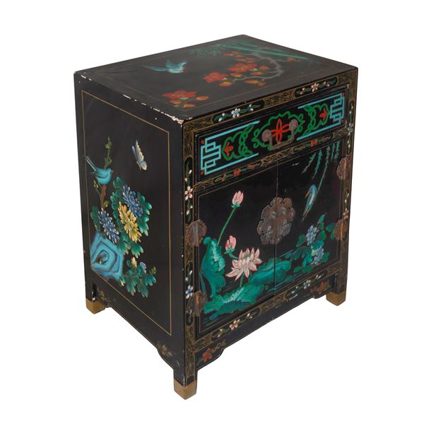 Pair of Chinese cabinets in lacquered and hand-painted wood