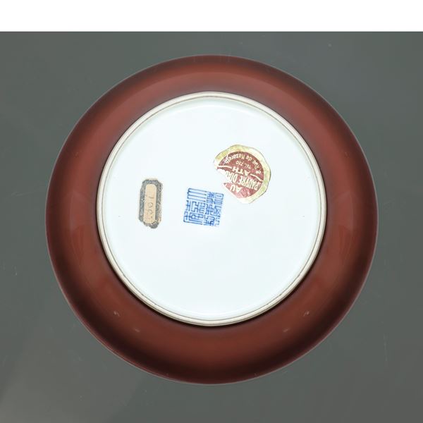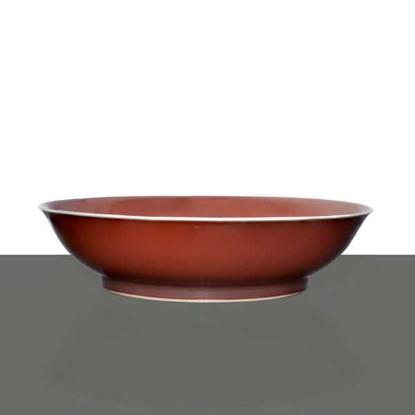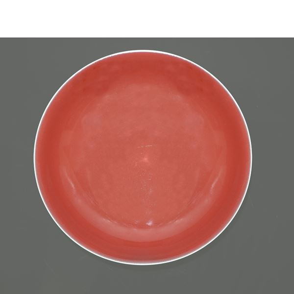 Red glazed Chinese ceramic plate, belonging to the Qing dynasty, Nineteenth century