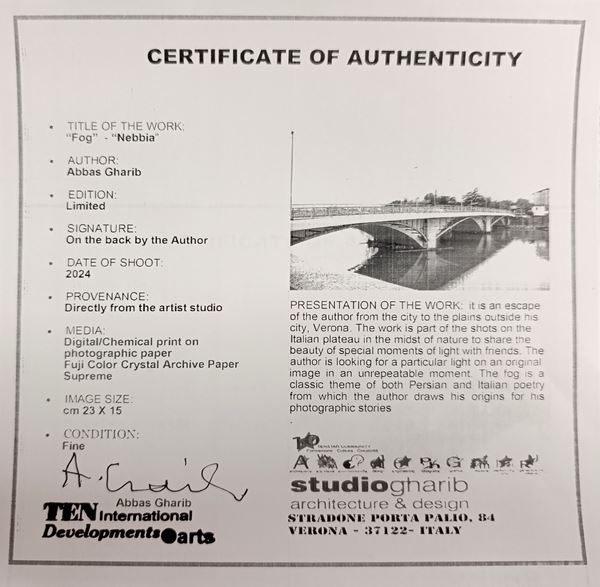 Fog is a classic theme of both Persian and Italian poetry from which the author draws his origins for his photographic stories.