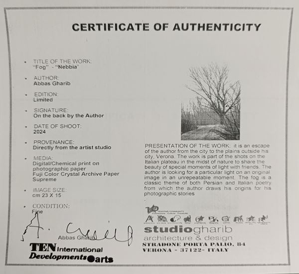 Fog is a classic theme of both Persian and Italian poetry from which the author draws his origins for his photographic stories.