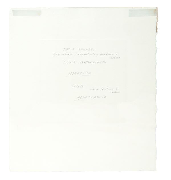 Back: Paolo Ghilardi etching/aquatint+colour background title: counterpoint