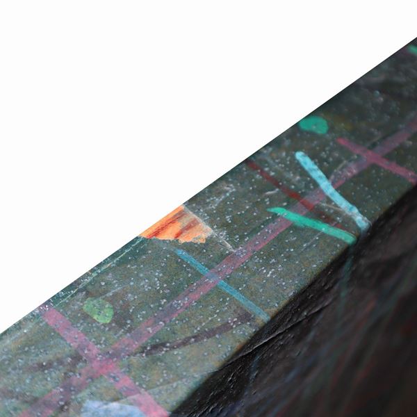 Oil and mixed media on paper applied to wood