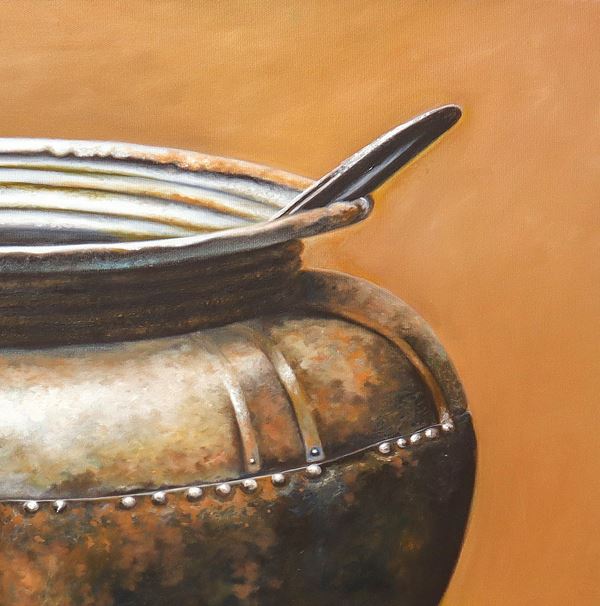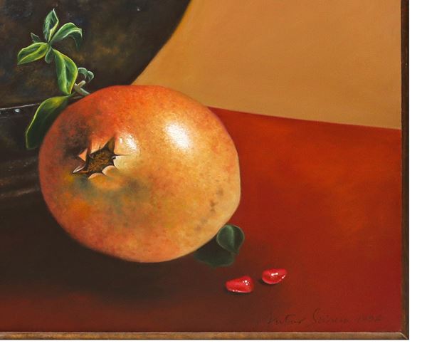 Still life with iron pot and pomegranate