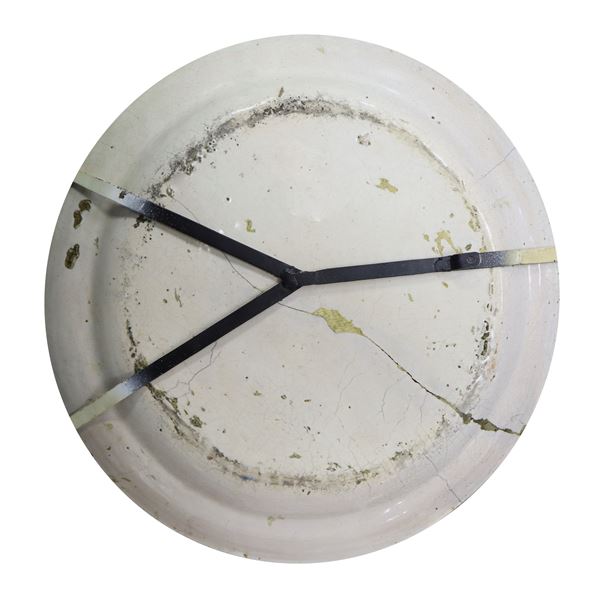 Caltagirone majolica plate with green sponge, with flower in the center, First half of the 20th century
