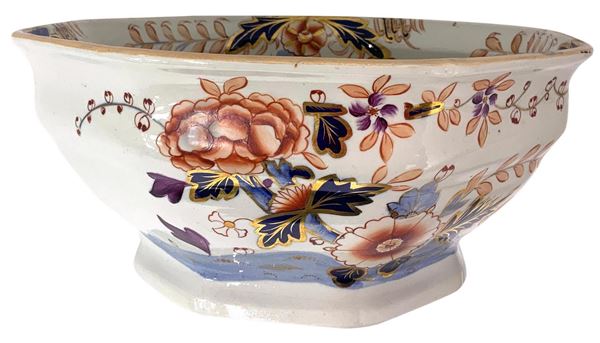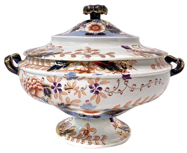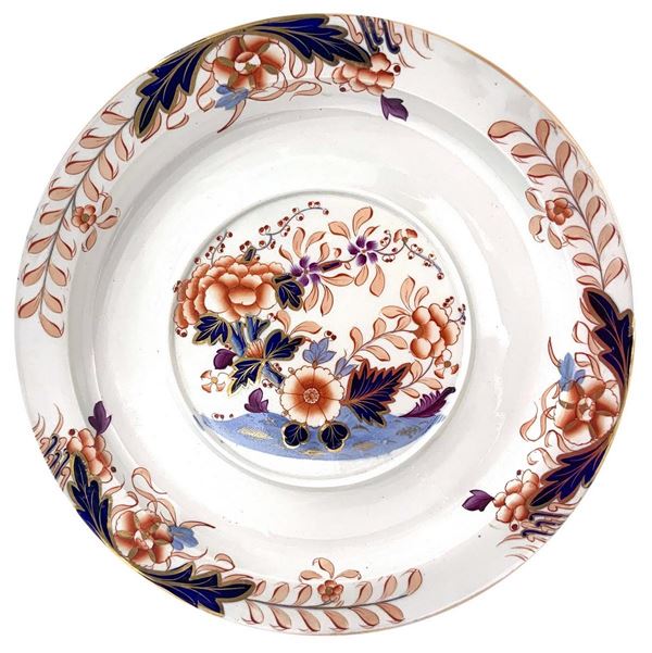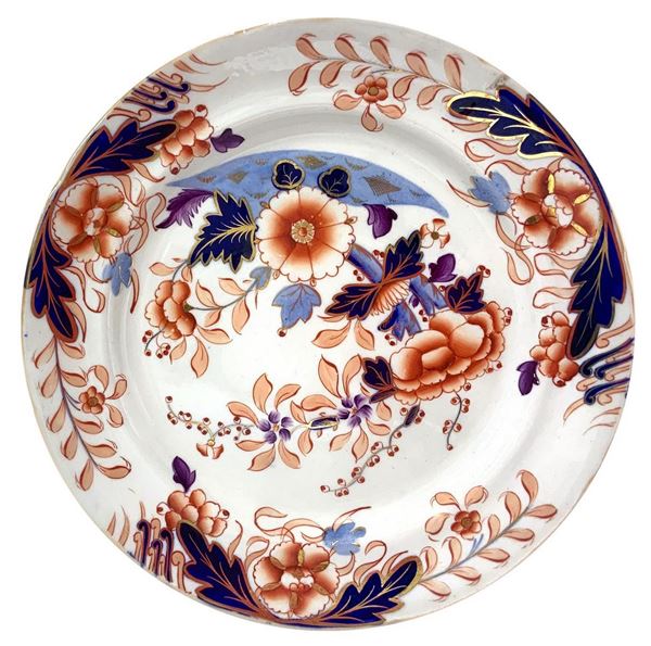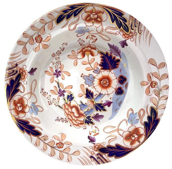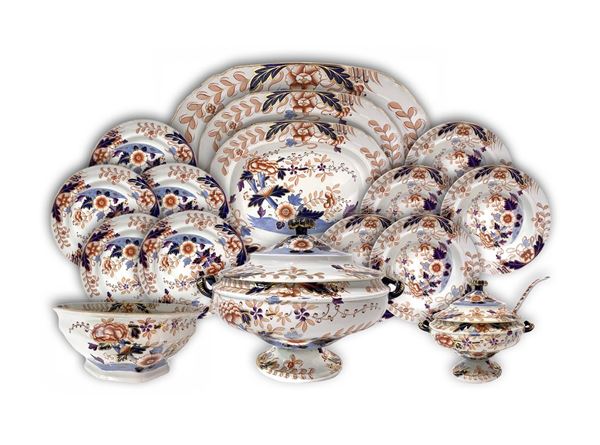 Consisting of 18 flat plates, 9 soup plates, 2 oval serving plates 36 cm, 1 large oval serving plate 50 cm, 1 round serving plate 36 cm, 1 round plate 35 cm, 1 round plate 31 cm, 2 oval plates 411 cm, tureen, 1 gravy boat, 1 salad bowl, 2 ladles. Origin: important Sicilian noble house.