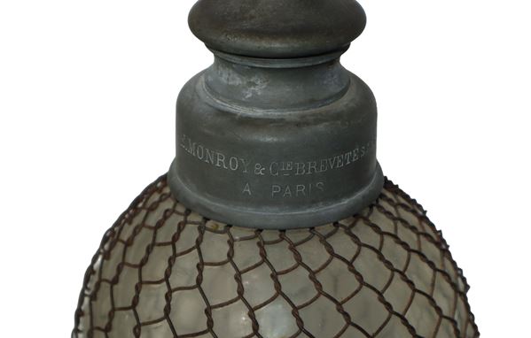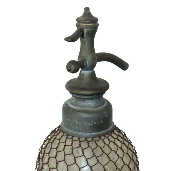 Double Sphere Soda Siphon with Bar Wire Mesh, France 19th century