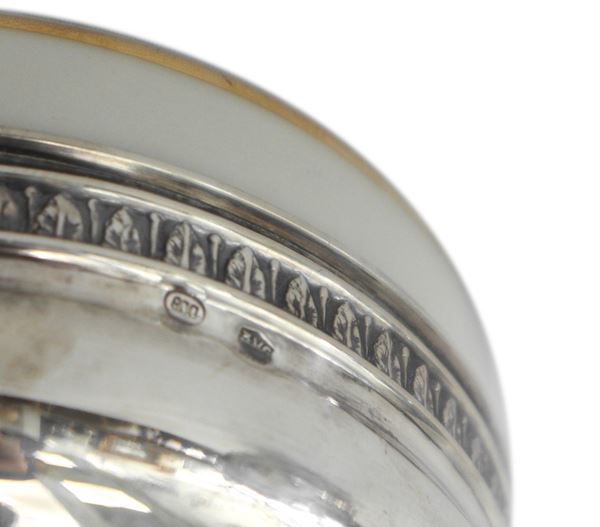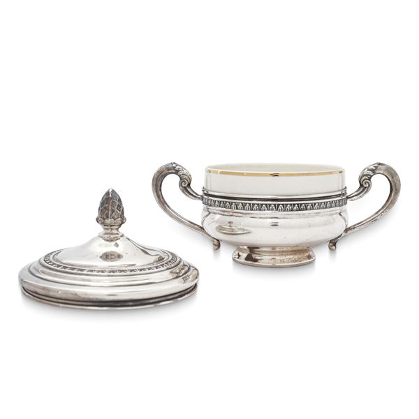 Empire style sugar bowl in 800 silver with porcelain inside