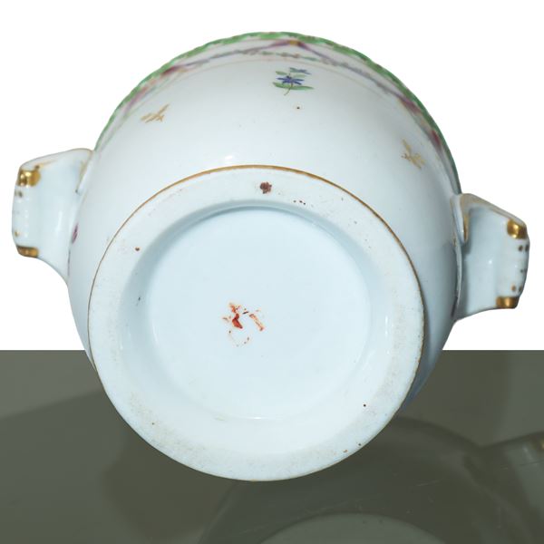 Small porcelain cachepot with floral decorations and gilding