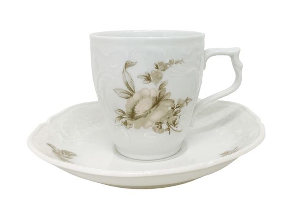 Consisting of coffee pot, 11 cups, 11 saucers, milk jug and sugar bowl.