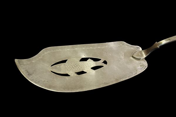 Kingdom of the Two Sicilies, Noble initials engraved in the handle. Hallmark of the Kingdom of the Two Sicilies. Service composed of: 24 forks (gr. 1872), 12 spoons (gr. 980), 3 serving cutlery (gr. 596), 8 coffee spoons (gr. 116), 12 teaspoons (gr. 312), 4 spice teaspoons (gr. 56)