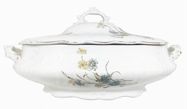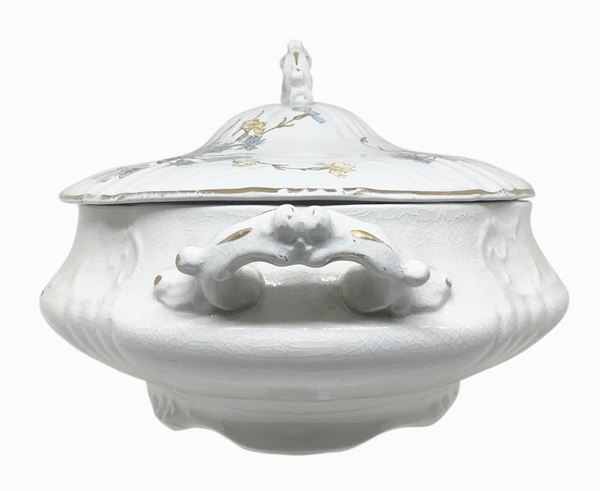 Soup tureen with white base and floral and ramage decoration, Early 20th century