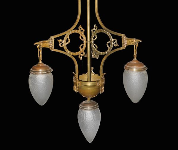 4-light chandelier with pine cone glass, Empire style (early 20th century)