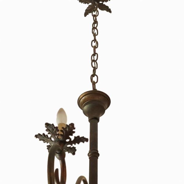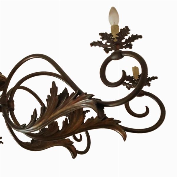 * 8-light chandelier in burnished metal, hand-worked and forged, Early 20th century