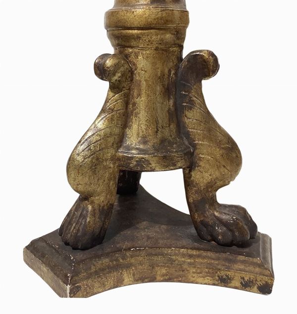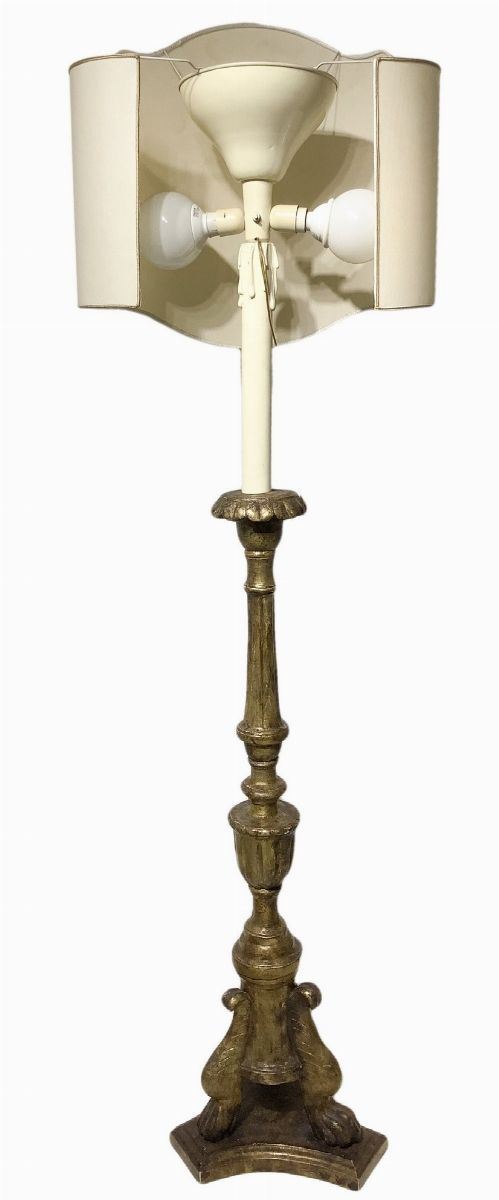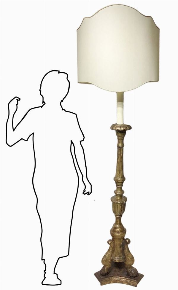 Floor candlestick in gilded wood with lampshade, 19th century
