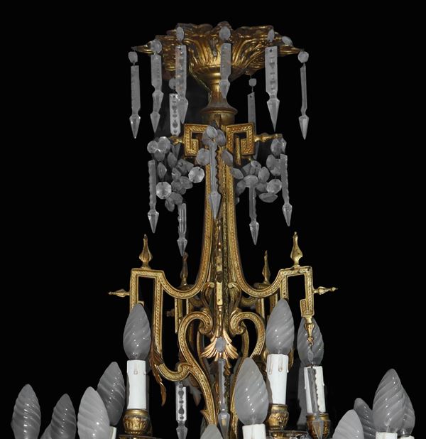 Living room chandelier in gold-plated brass and glass brindoli