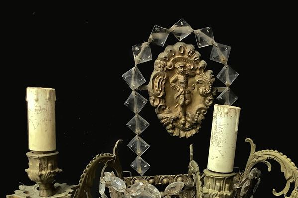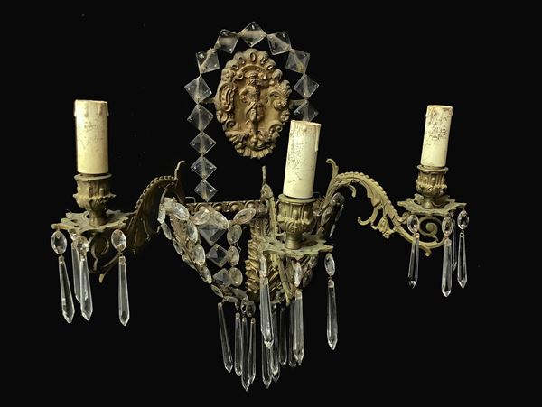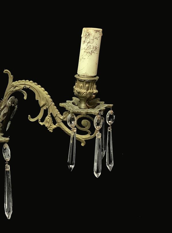 Pair of appliques in brass and light sponge paper, with hand-ground brindoli. With three lights, Late 18th century