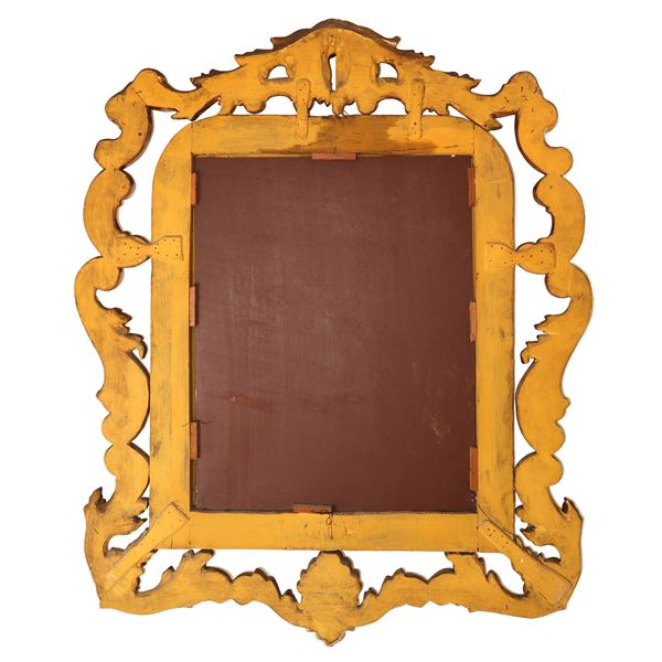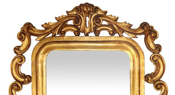 Baroque style mirror in gilded wood with side friezes, 20th century