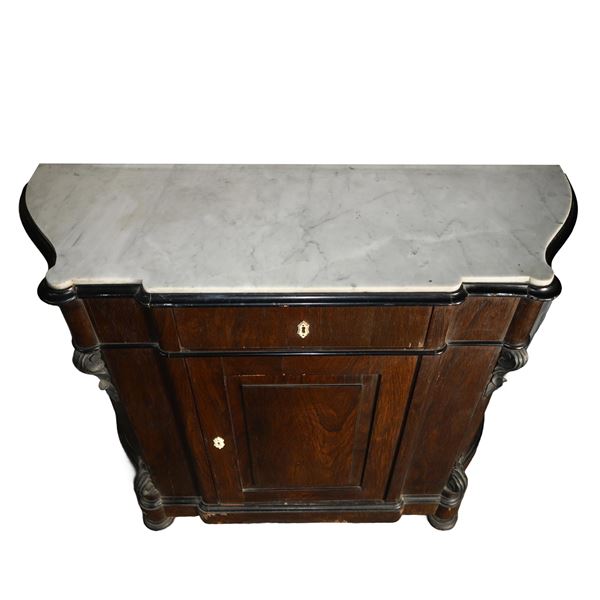 Etagere with white marble on the top, drawer under the top and door, 19th century