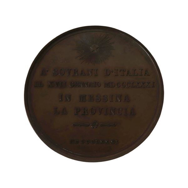 Medal collection F.Speranza. On the back, inscription on 5 lines surmounted by the Savoy star in memory of the royal family in Messina.