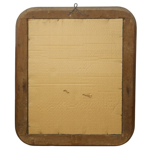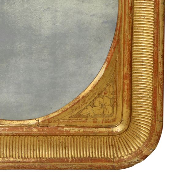 Mirror tray frame in gilded wood with leaf round corners pleated on the oval mirror, France 19th century