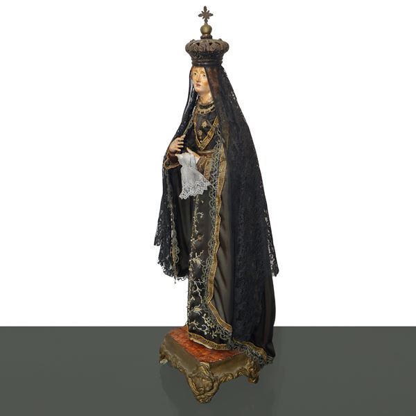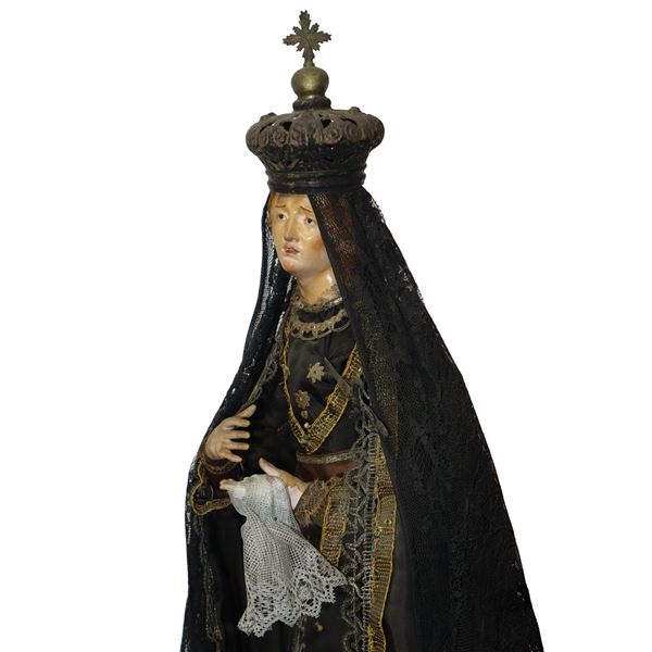 Our Lady of Sorrows with face, hands and feet in polychrome terracotta, Puglia 19th century