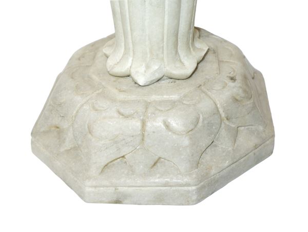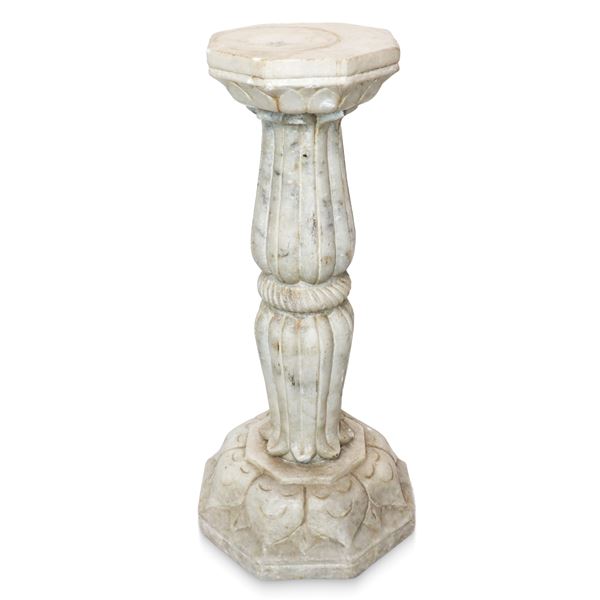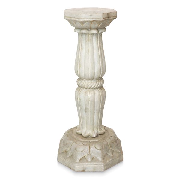 Pair of carved marble columns with octagonal base, central column with a cordoned edge and octagonal capital with leaves, Late 18th century