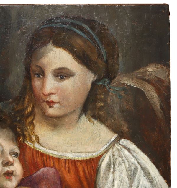 Very delicate and beautiful painting whose state of conservation is good but, through the observation of the surface with the Wood's lamp, one can notice the various pictorial retouches it has undergone in the past.